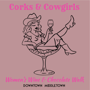 Get ready for the 2026 Women, Wine & Chocolate Walk with the official event shirt—designed for style, comfort, and a fun “Corks & Cowgirls” theme!