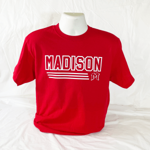 A Madison short sleeve t-shirt for our Mohawk fans. The red short sleeve t features a white “Madison” design with the classic “Flying M” on the front and is a perfect addition for any Madison Mohawk.