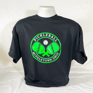 Middletown is know as the “Pickleball Capital of Ohio” so here’s a great shirt to show it. This black short sleeve t features a white and neon green “Pickleball Middletown, Ohio” design on the front.